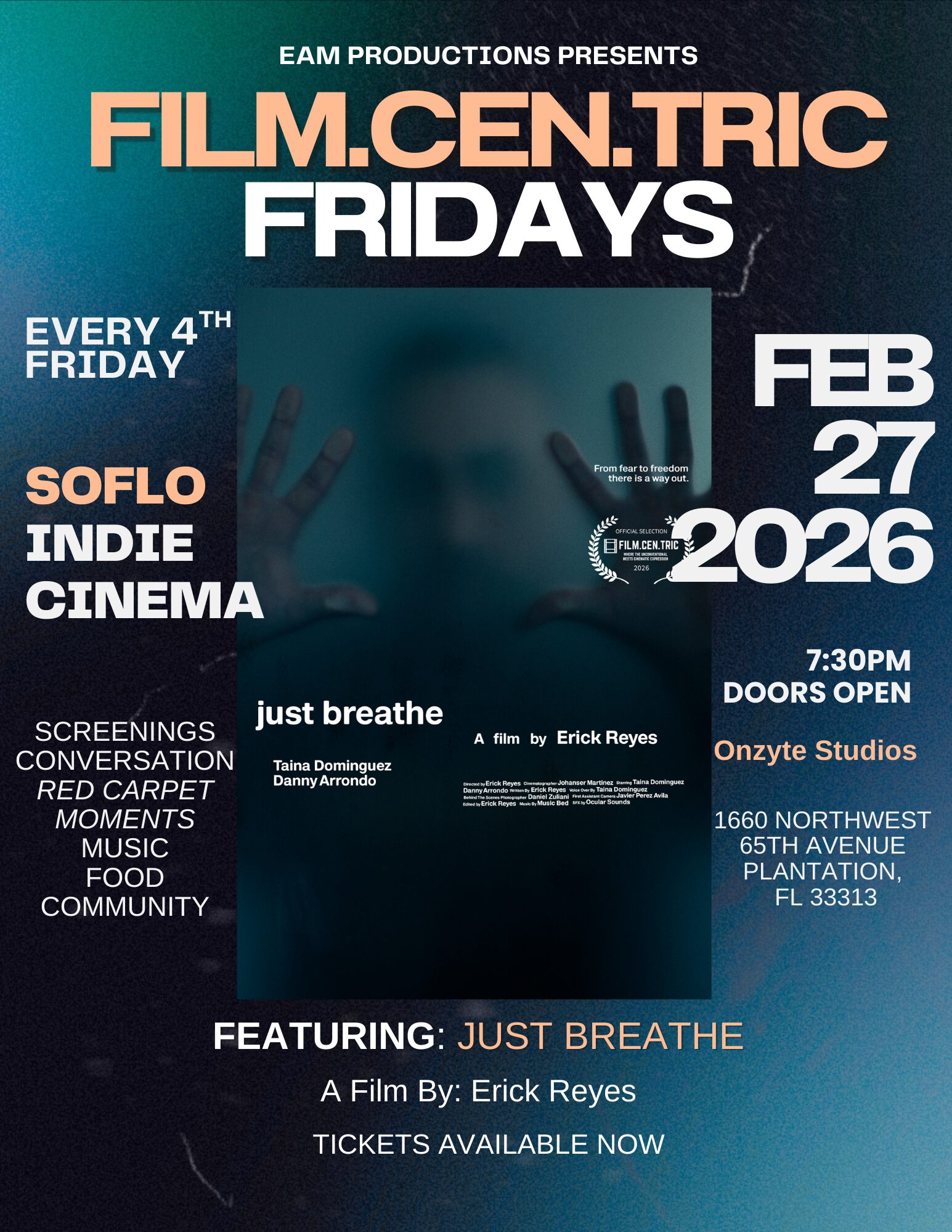 We’re only in year three, but Film.Cen.Tric Where the Unconventional Meets Cinematic Expression is becoming more than an event…it’s becoming a trusted platform. That growth is possible because South Florida’s independent film community continues to believe in what we’re building. And we’re building it together.