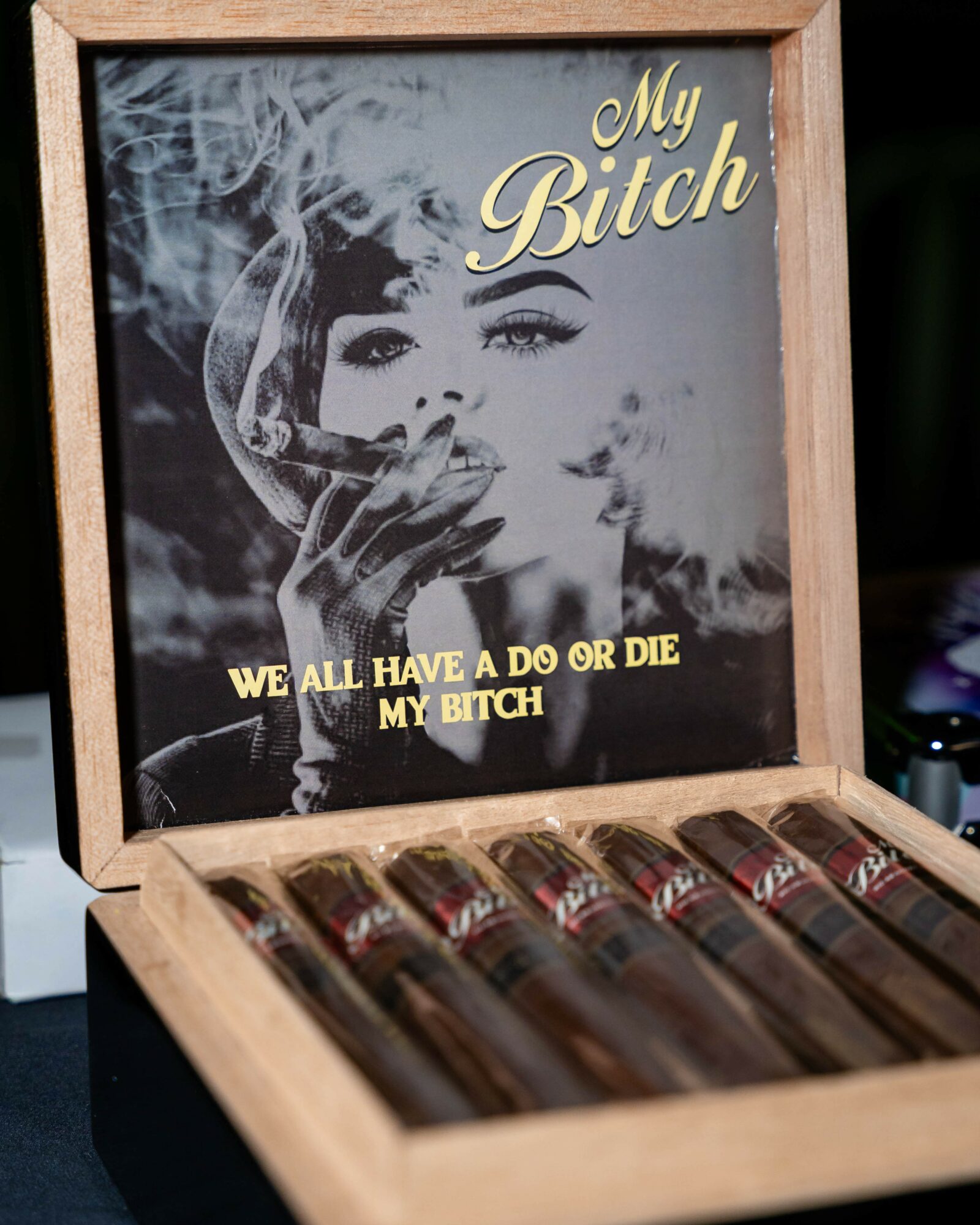 The journey to creating My bitch cigars began at a trade show in Las Vegas July of 2021 , Where i was first captivated by the bold yet elegant aroma that filled the air . Surrounded by passionate cigar enthusiasts , I realized that this rich , sophisticated experience . Thus MY Bitch Cigars was born a brand dedicated to crafting exceptional cigars that empower women to feel confident and sexy while enjoying a luxurious smoke . It took me two years of trial and error to get the perfect blend of meticulously handcrafted , thanks to my dear friend Damian Tapanes owner of La Rosa De Sandiego and The Bouncer , he helped me achieve my dream of creating my own brand , in a field which is mainly for men , i was fortunate to have him as my mentor . My mission is to break traditional stereotypes and create a space where everyone can savor the pleasure of a finely crafted cigar . I later found out that my Grandfather Juan Montero on my mom side had tobacco farms in Cuba , and both my grandfather and great grandfather on my dad’s side were huge cigars enthusiasts . Either way its in the genes. I want My Bitch Cigars to be a legacy .