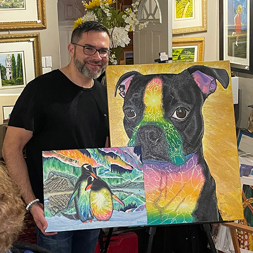 My work focuses on landscapes and floral still life, explored through pointillism, impressionism, and layered techniques that reward patience and close observation. Alongside my practice, I curate and support Antonio’s work and mentor a small group of emerging and student artists as they develop confidence, discipline, and artistic voice.