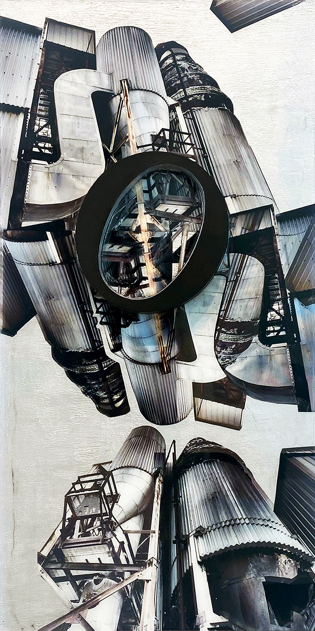 Sometimes these dreams are romantic, manifesting as thick, abundant blankets of flowers. Other times, they take the form of my FundaMENTAL factories™ series. Building on a lifelong fascination with architecture, I envision these as ‘castles of industry’ where intangible concepts like love, hope, and peace can be manufactured and made real. Much like the artist Charles Sheeler, I view these industrial structures as modern cathedrals. I’m questioning what we actually worship today, creating a visual map of what we need to truly thrive, rather than just survive.”
