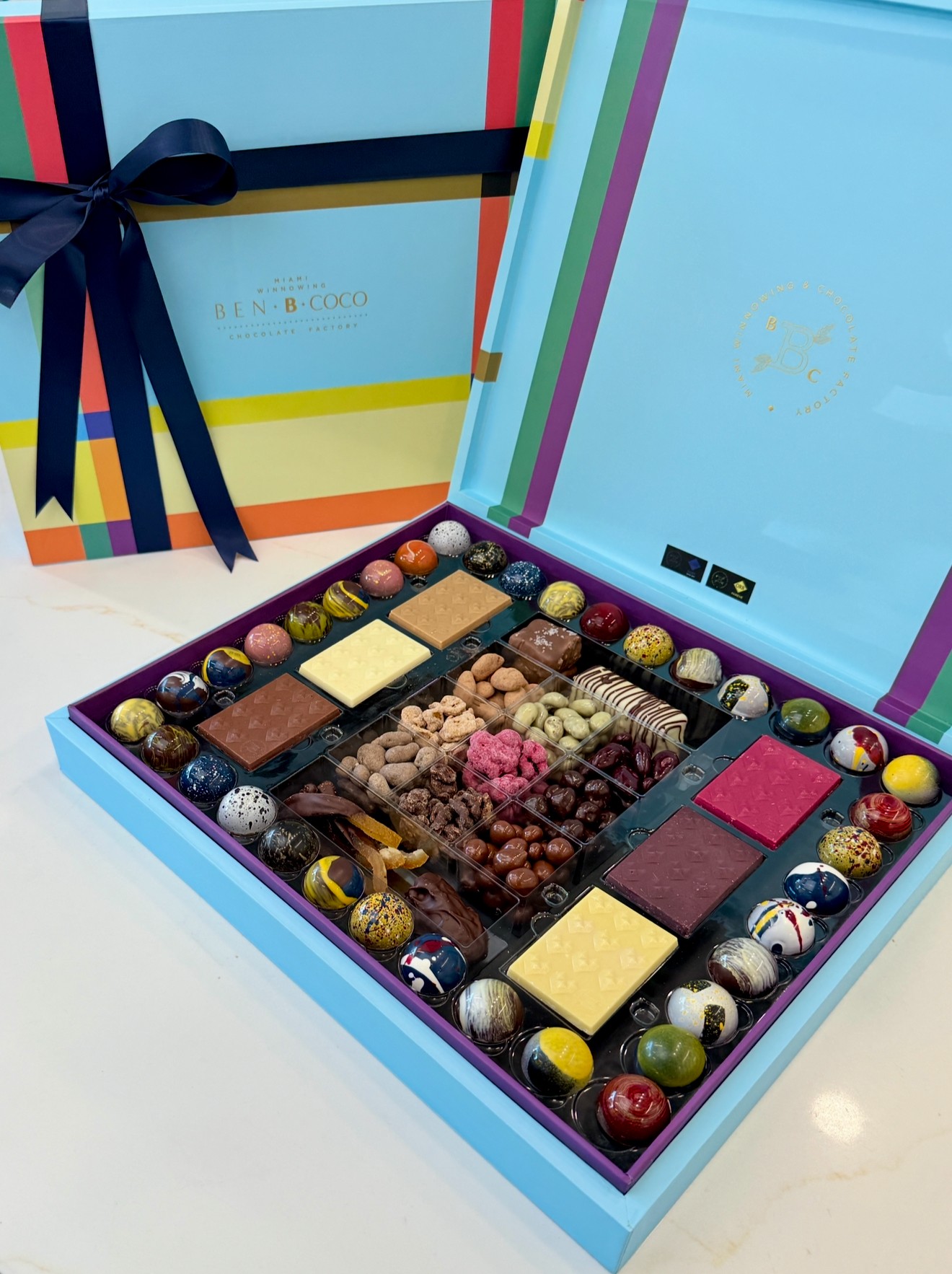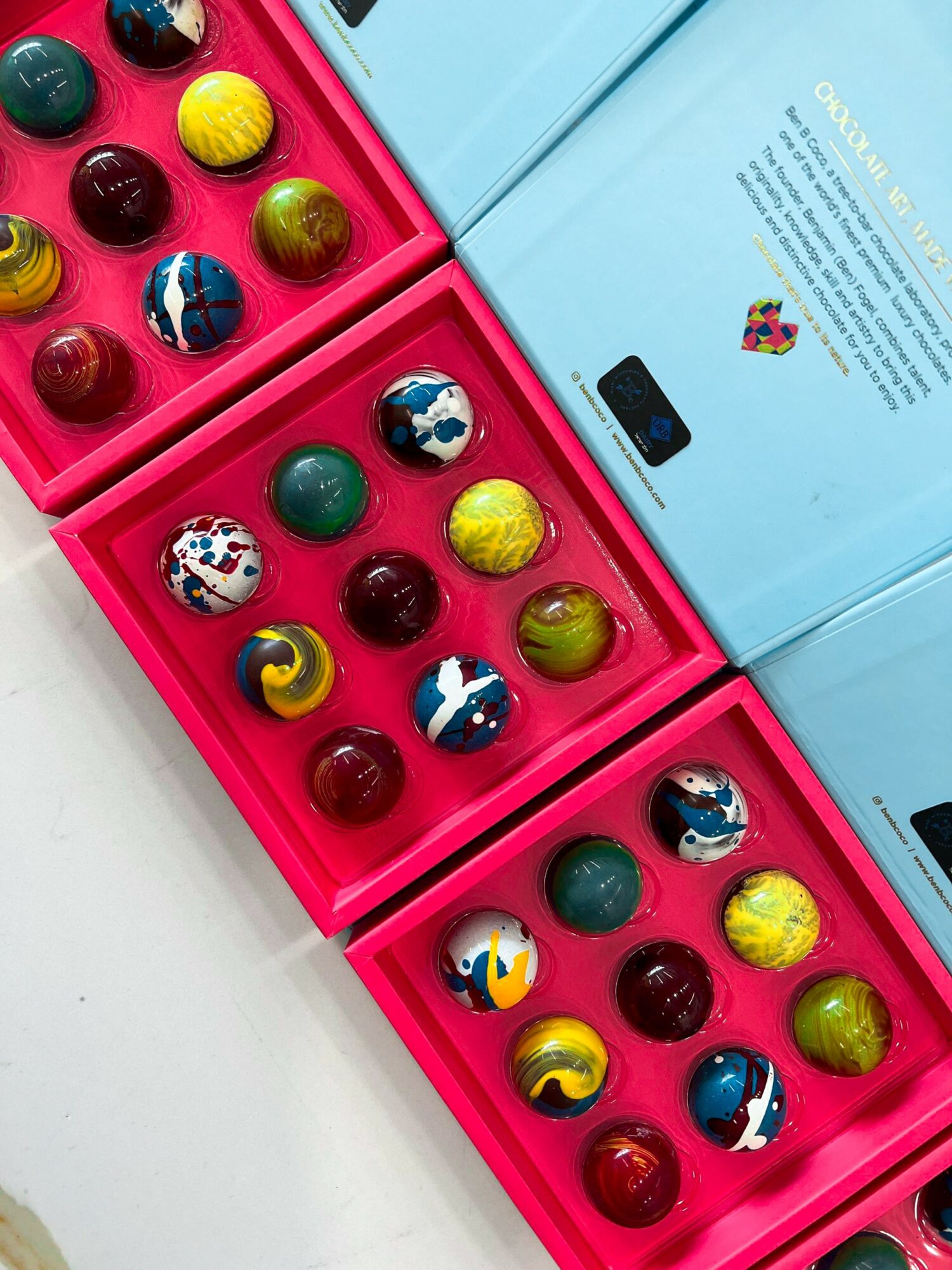 Over time, our hand-painted bon bons, signature chocolate bars, custom platters, and seasonal creations earned recognition from luxury brands, hospitality partners, and chocolate lovers alike. Today, Ben B Coco is known for its meticulous craftsmanship, artistic approach, and commitment to making everything entirely in-house, no shortcuts, no outsourcing.