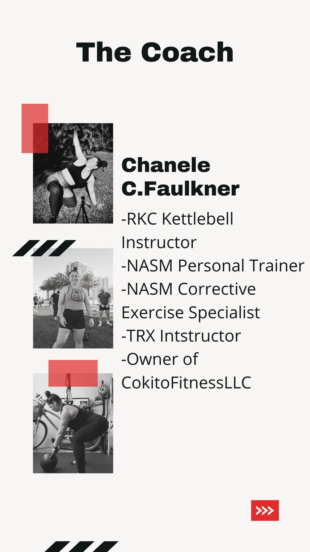 What started as a personal journey to heal and rebuild evolved into a passion for helping others do the same. I earned ny Nasm Certified personal trainer & nutrition coach certification, then my RKC Kettlebell Instructor Certification & StrongFirst then became a corrective exercise specialist, and built my business: CokitoFitnessLLC around strength, accountability, and growth.