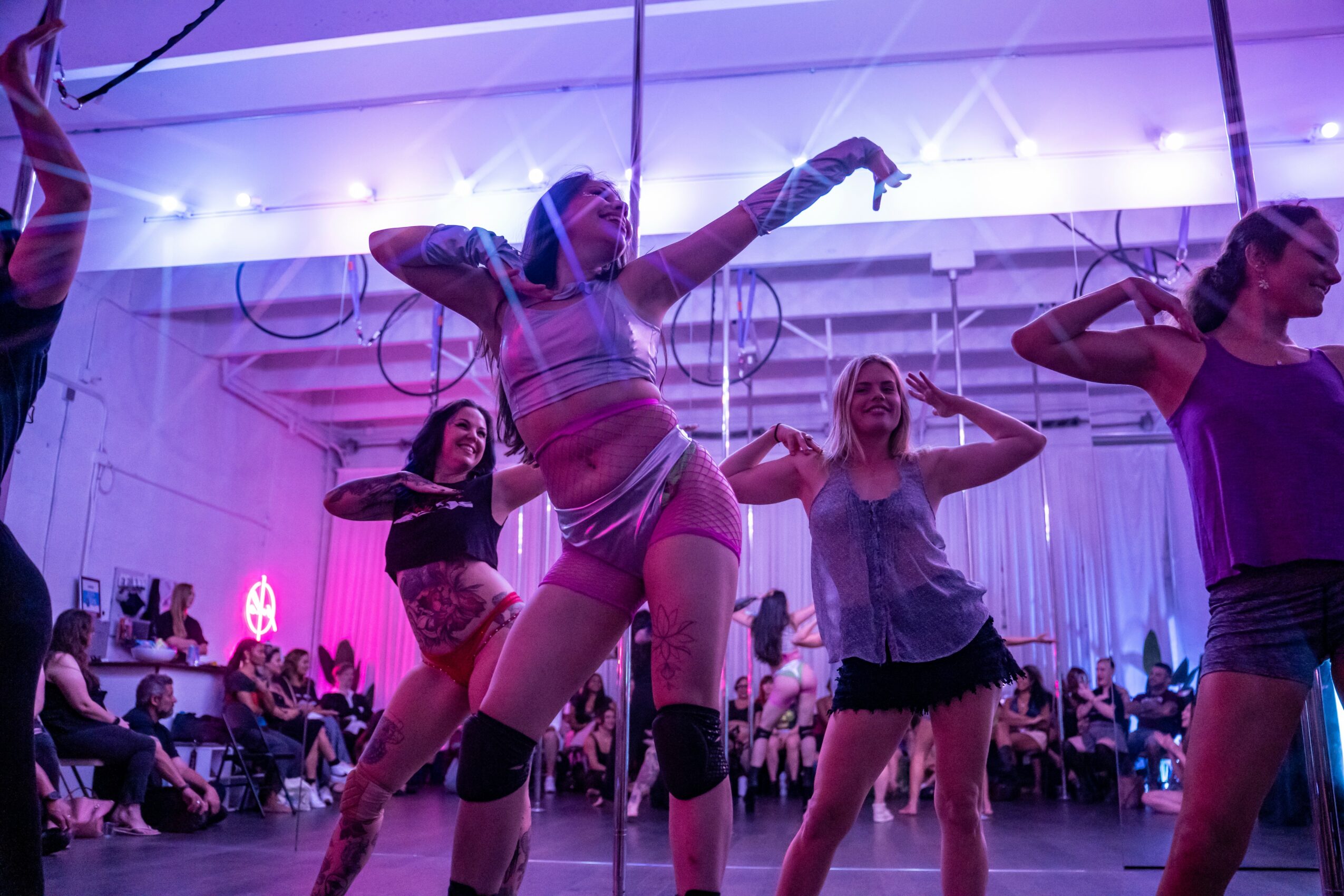 We specialize pole and aerial fitness with a strong focus on allowing for creative liberties from our students to move in whatever way suits them – whether it’s sporty, artistic, or exotic. Our entire brand and aesthetic is meant to appear as if it’s a blank canvas for you to explore and create.