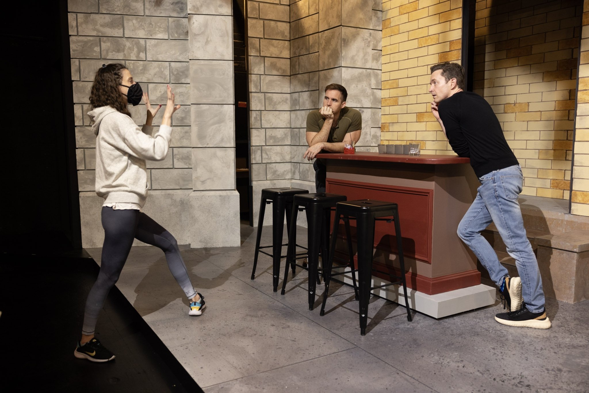 Feature: Nicole Perry creates choreography with Clay Cartland (L) and Matthew Buffalo (R) at Island City Stage. Photo by Matthew Tippins.