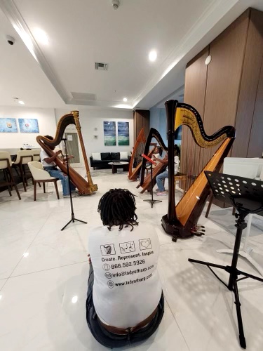 I started learning how to play the harp after I graduated from high school. It was not long before I was performing for special events. After I graduated, I became a music educator with MDCPS where my career was over 20 years. These days, I run my own academy where I center students of BIPOC communities in a harp positive space.
