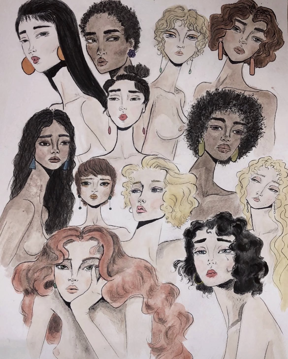 But I’m most known for my ink/watercolor pieces that highlight women and nature with embracing contrasted colors.