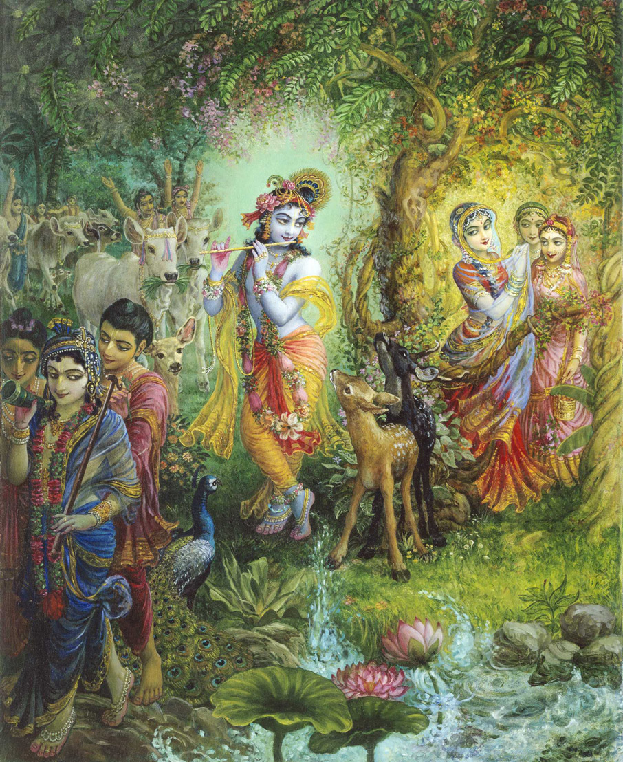 I was struggling on the canvas in all my years. My Guru, Srila Prabhupada, requested me to paint oil paintings of God’s pastimes, Krsna’s pastimes that take place in the spiritual world, and for me a simple New York ex-hippie, even with descriptions, how could I understand and painting that realm? While I was painting, I had to do a lot of praying, listening to his cassette tapes about Krsna Consciousness to get on that platform. I had to chant a lot of Maha-mantra (Hare Krsna mantra). Srila Prabhupada said about me in 1976 to a large audience, “In the beginning she could not paint, yet by hearing, chanting and remembering Krsa, the talent came out.”