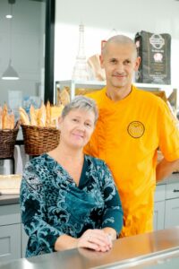 We are an authentic French Bakery and café. We make the jam, the cakes, the pastries, the bread, the chocolates, the doggie treats and soon we will make ice creams. We offer breakfast, lunch, coffee, and tea. I get up every morning at 3 am, I come to the bakery where I start preparing for the day.