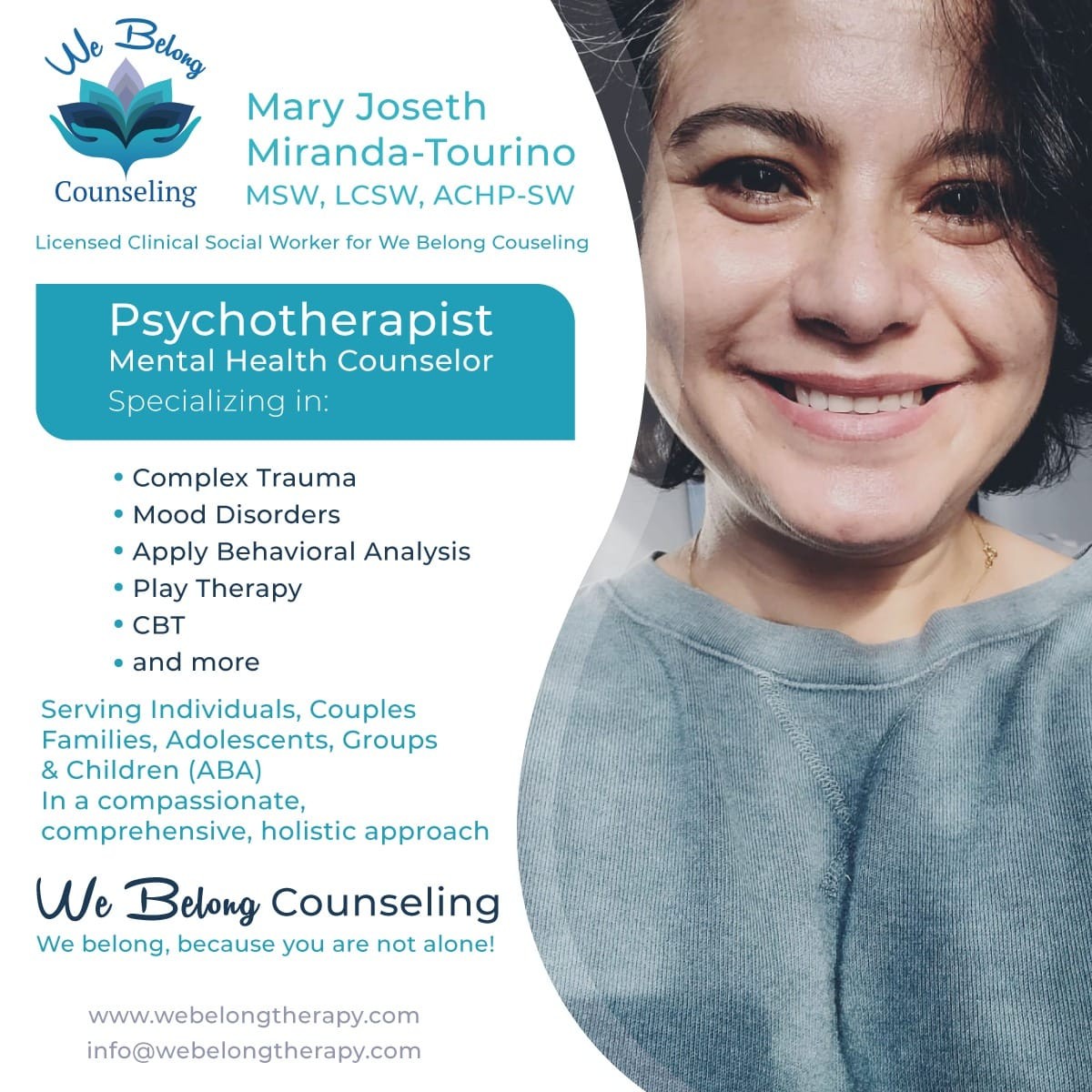 Thanks – so what else should our readers know about We Belong Counseling – Mary Joseth Miranda-Tourino?