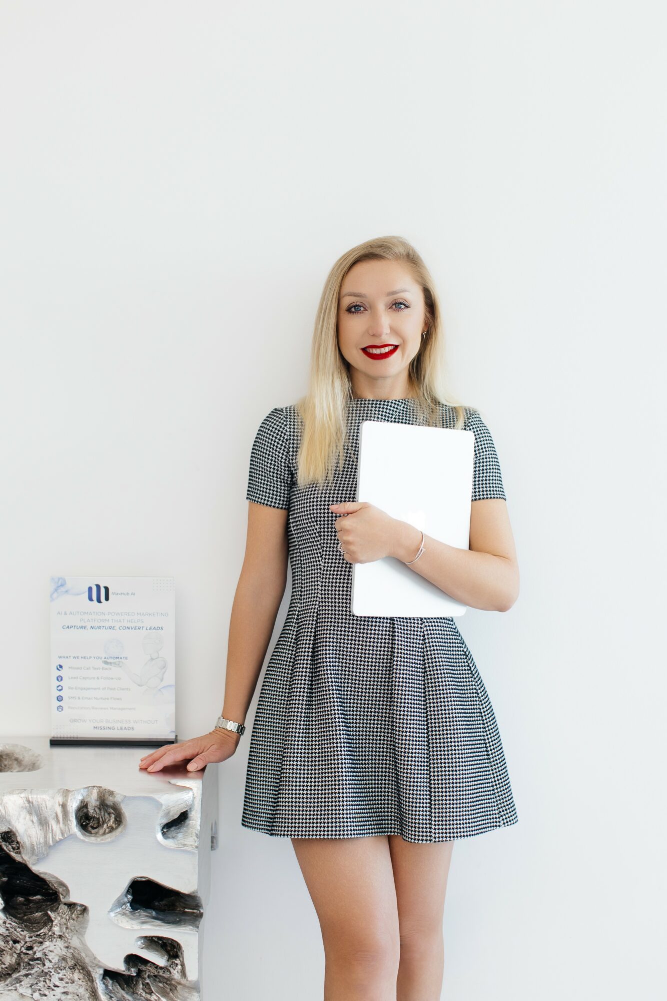 So my husband and I built the solution: MaxHub.AI — an all-in-one AI and automation platform designed to help businesses capture, nurture, and convert leads without dropping the ball. Missed call-to-text back, an AI receptionist, and a smart follow-up suite with hyper-personalized email and SMS sequences — all running automatically in the background. Before we ever launch a single campaign for a client, we set up their system first. So when the traffic comes, the business is actually ready for it.