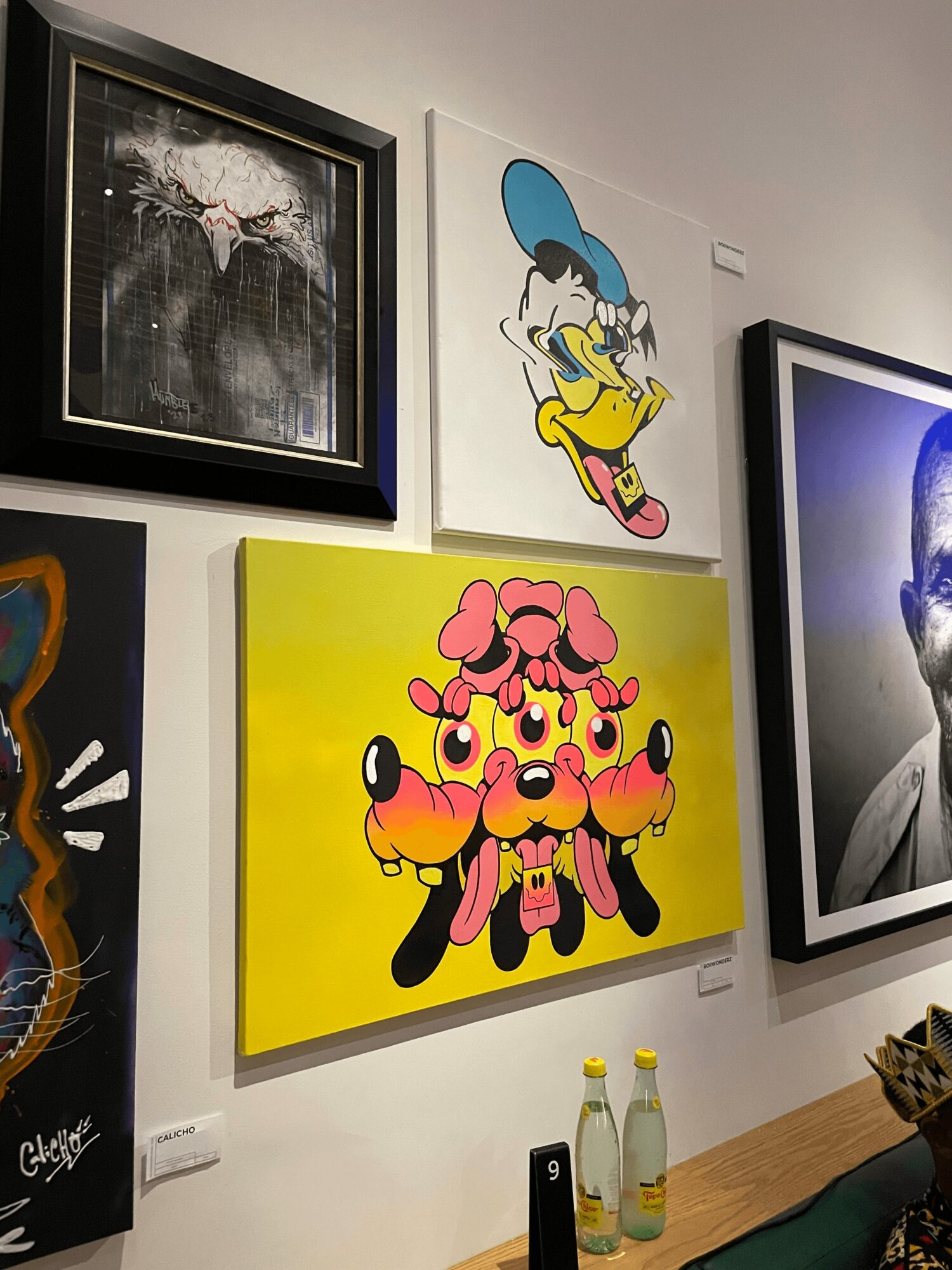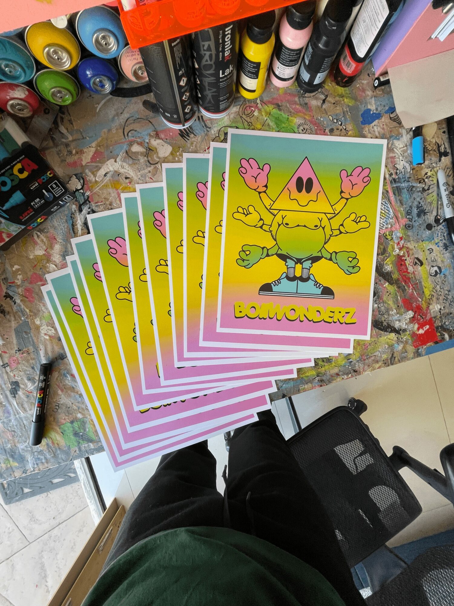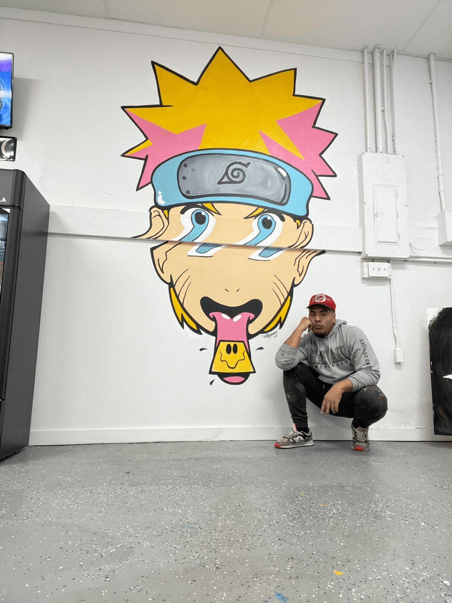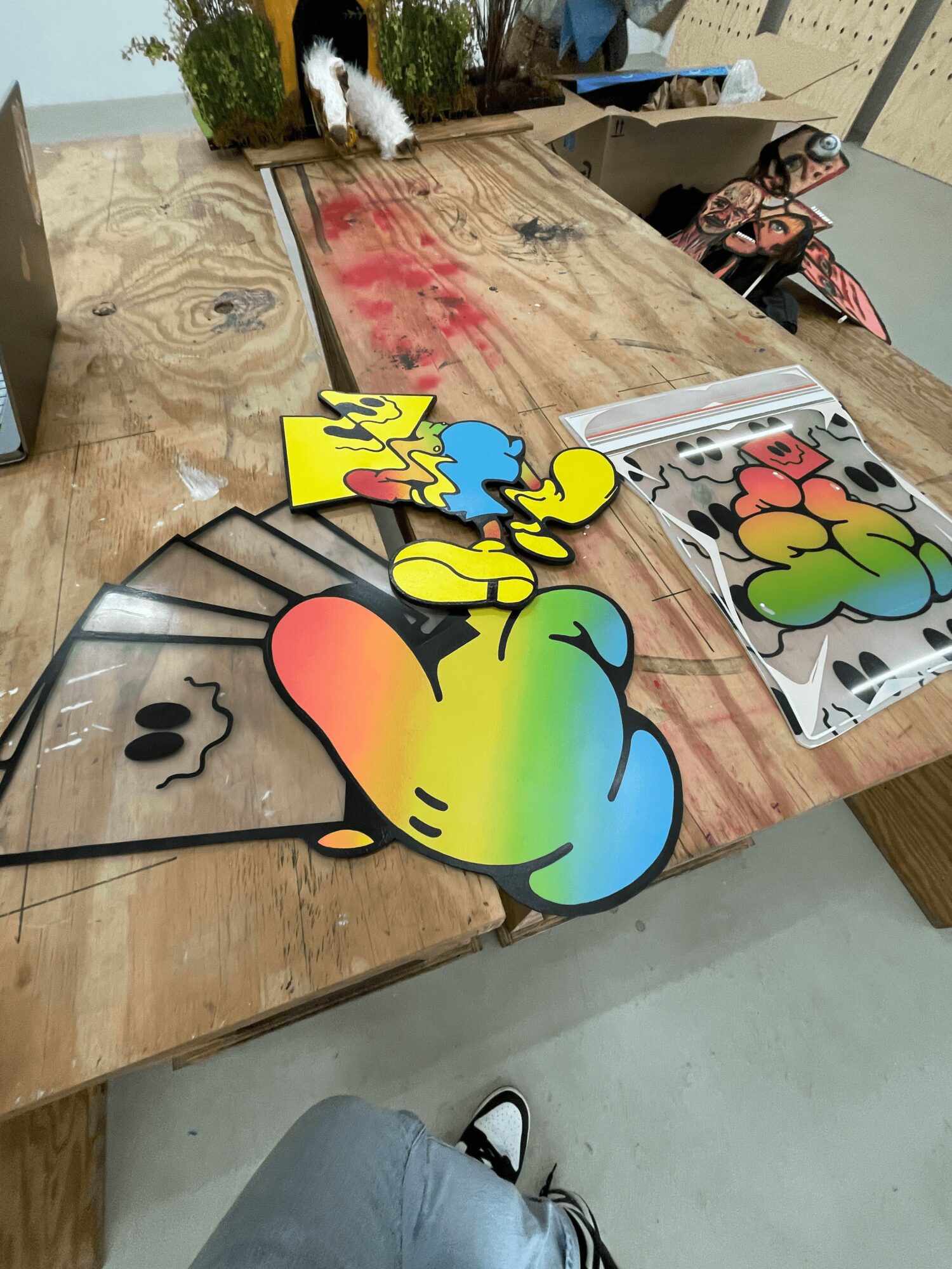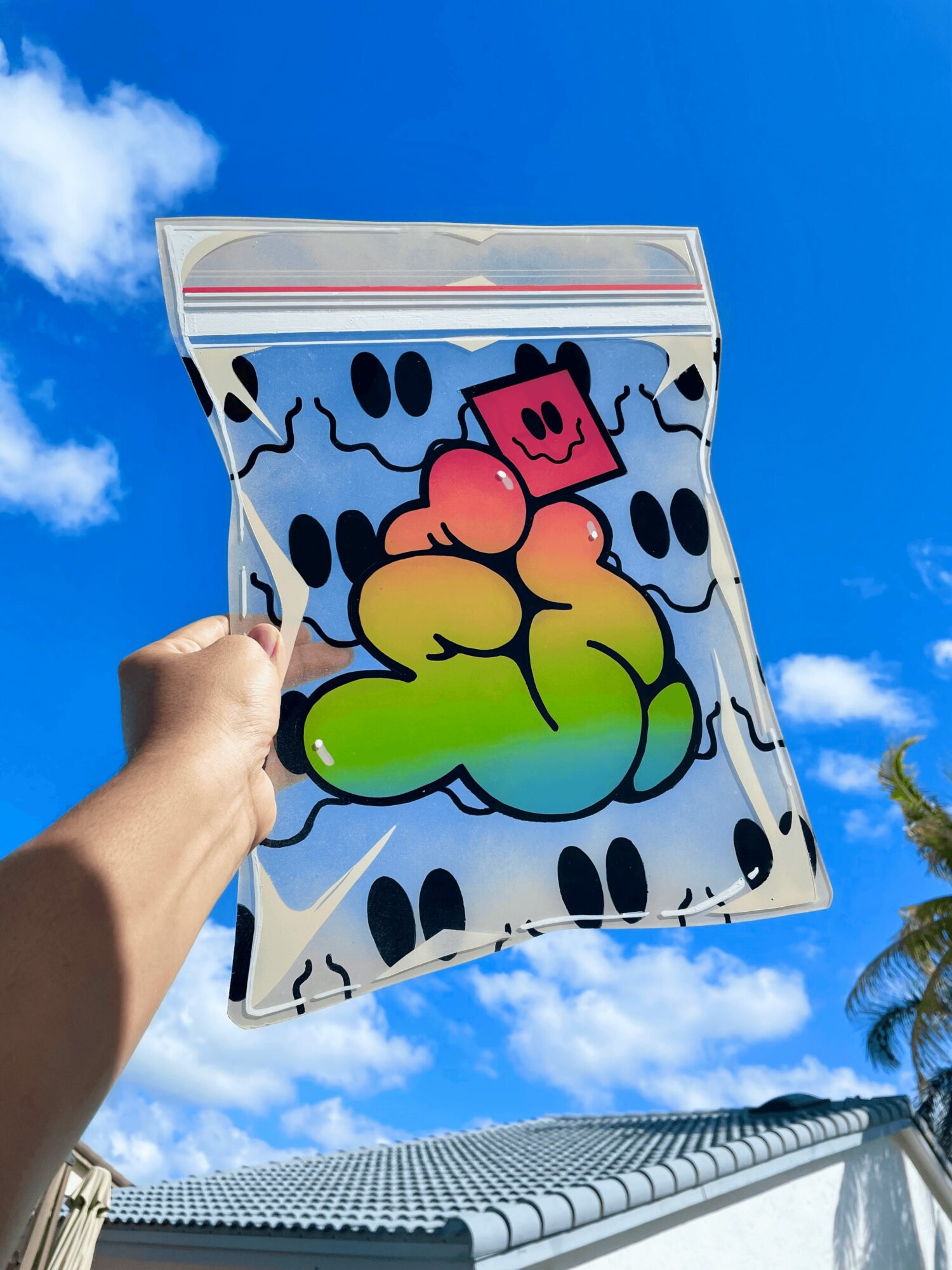 I’m known for my trippy, distorted, colorful and fun world. I’ve been heavily inspired by street art and pop art all my life and pay an ode to that in whatever I make. I’m most proud of going outside my comfort zone and experimenting with more mediums than just painting. Over the last year I’ve been experimenting with wood cut outs and most recently plexiglass