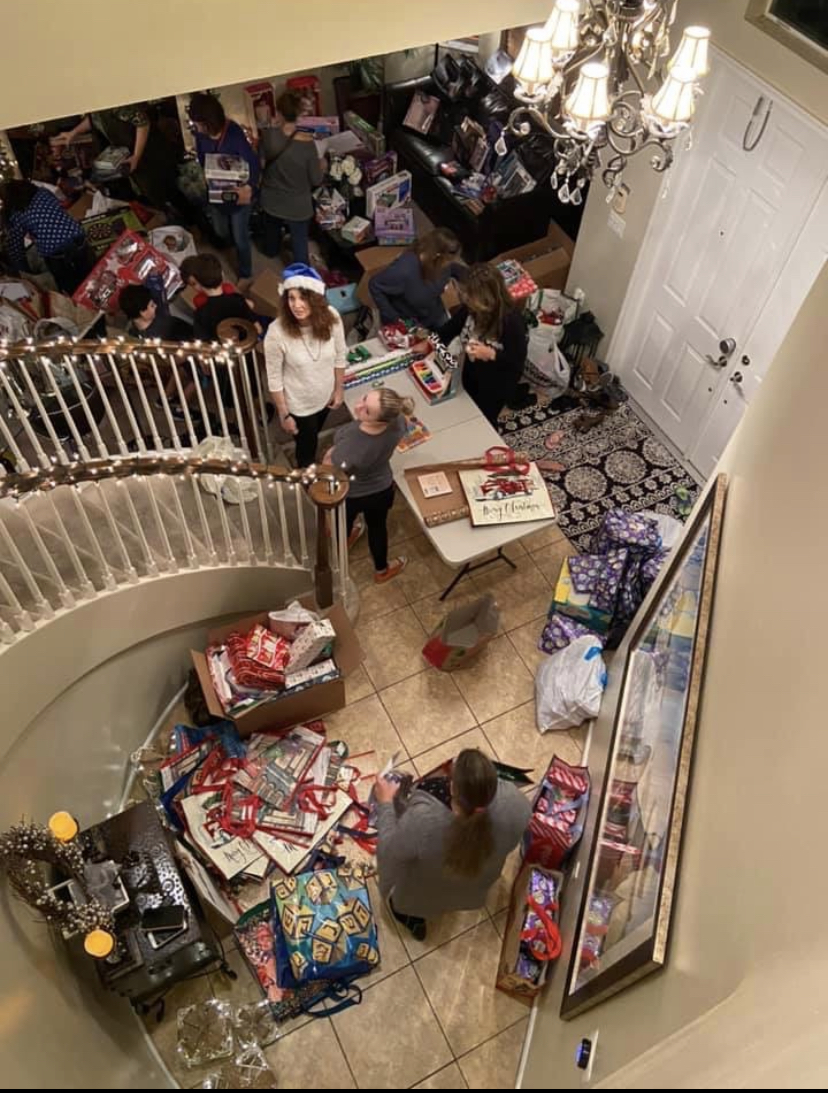 Some other traditions that have grown through the mom’s club is the Thanksgiving Food Drive & The Adopt a family Program. Local businesses as well as residents donate food during November to be given to families in need. Over the last few years we have turned our home into a food pantry where families in need came to get groceries for the Thanksgiving Break as well as a gift card for the purchase of a turkey. Families in need also are able to be added to an adopt a family wish list where the families remain anonymous and local residents adopt a family from the list of families in need. As gifts are dropped off at my home they are organized by the last name of the family that will be picking up the gifts in time for the holidays. As an annual tradition I host a That’s A Wrap Party where the community can come over and help wrap gifts for families in need while celebrating the holiday season together.
