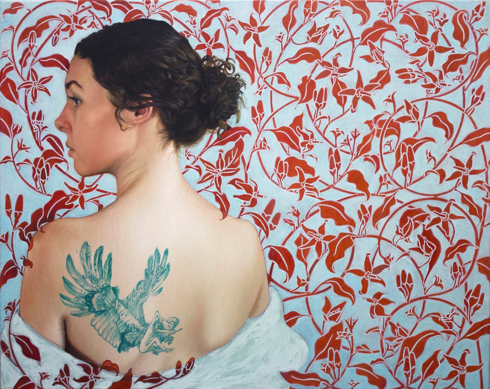 I’m happy to share about my work! I specialize in creating figurative oil paintings with symbolic narratives of death, rebirth and transformation. My current work focuses on the divine feminine – the sensuality and power inherent in the feminine form. Being from a Caribbean island has influenced my color palette. Instead of neutral grays and beige, I use jewel tones and saturated color in my paintings.