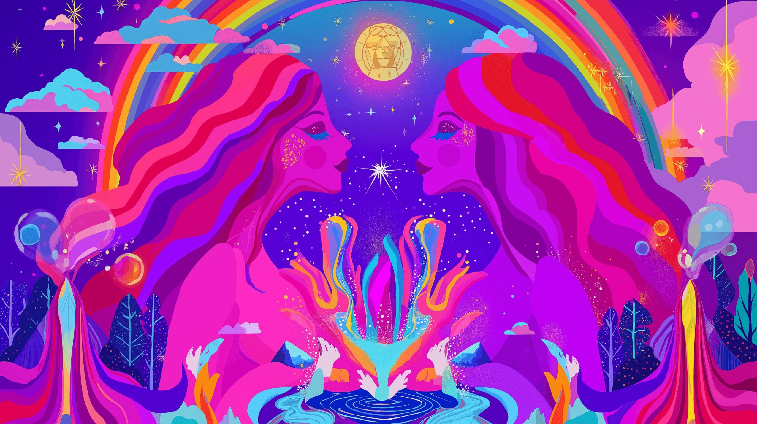I create vibrant worlds in any medium. Murals on walls, digital pieces on screens, and playful moments you can interact with. My signature is a cosmic color palette, flowing whimsical shapes, and stories that celebrate women with power and joy. I’m proud of an Emmy, my “Self Love” living on the Moon 🌕, Times Square takeovers, speaking at the UN Science Summit, and becoming an Adobe Firefly Ambassador.