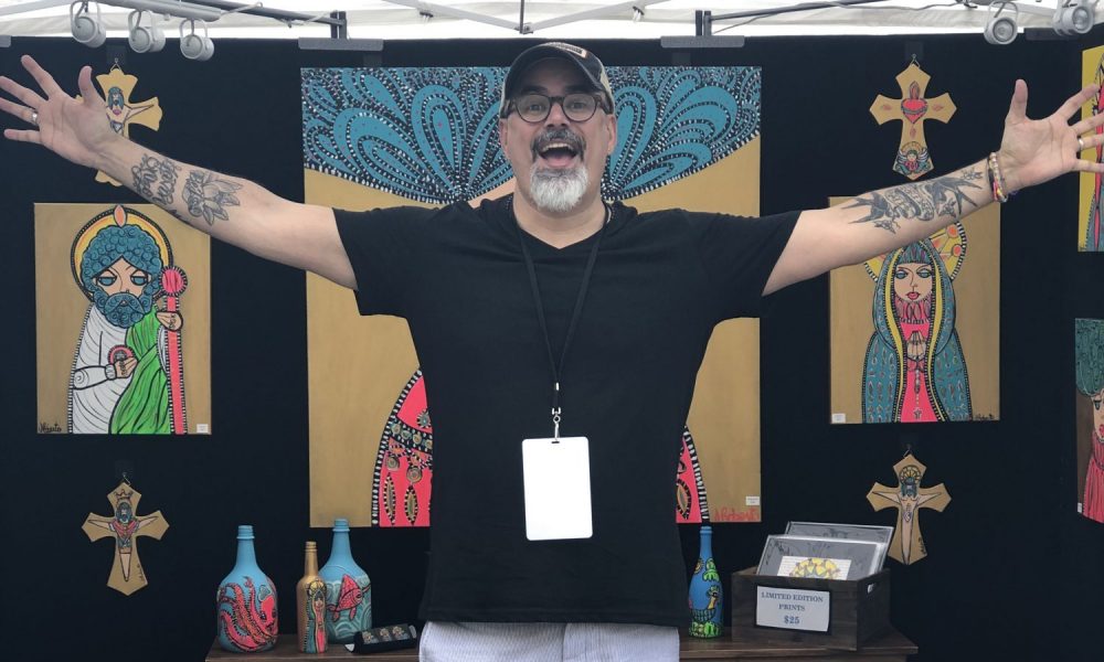 Unfortunately, life sometimes brings difficulties, and when I was nine years old, I was the victim of prolonged sexual abuse by a male neighbor. This, of course, changed the trajectory of who I would become. Art stayed in my life on and off and mostly from a distance and then disappeared altogether. From a young age, I suffered from undiagnosed mental health issues that later turned to self-medication and full-blown drug addiction. Through it, all my wife and family were always a beacon of love for me, and in late 2015, I would finally begin to get much needed professional help. As part of my recovery, I decided to turn to painting as therapy, and I was once again hooked. The art eventually allowed me to connect with that little boy I had left behind many years ago. My art practice has helped make me whole and brought me the peace that both my family and I needed. I am also proud to say I have been clean from substances for three years now.