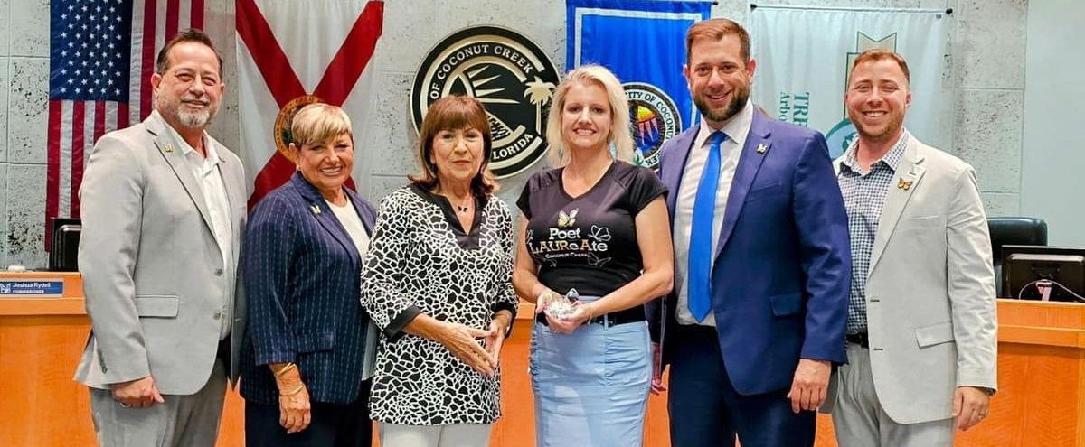 That commitment to using poetry as a civic and communal tool is at the heart of my role as the first Poet Laureate of the City of Coconut Creek, a position I was appointed to in 2022, making Coconut Creek the first municipality in Broward County to name a poet laureate. In my interview with WLRN’s Sundial, we talked about what it means to be a “poet of place:” writing not only about palm trees and traffic, but about the people who live under those trees and drive those roads and then using that work to create new spaces where neighbors see themselves reflected. As poet laureate, I’ve written dozens of civic poems, led workshops in parks and libraries, helped open poetry writing groups, and collaborated on events that invite residents from children to retirees to speak their own lines into the public record. That work dovetails with my ongoing doctoral studies in Higher Educational Leadership &amp; Research Methodology at Florida Atlantic University, where I’m asking how institutions can better support creative, inclusive practices that move beyond the classroom and into the wider community.​​
