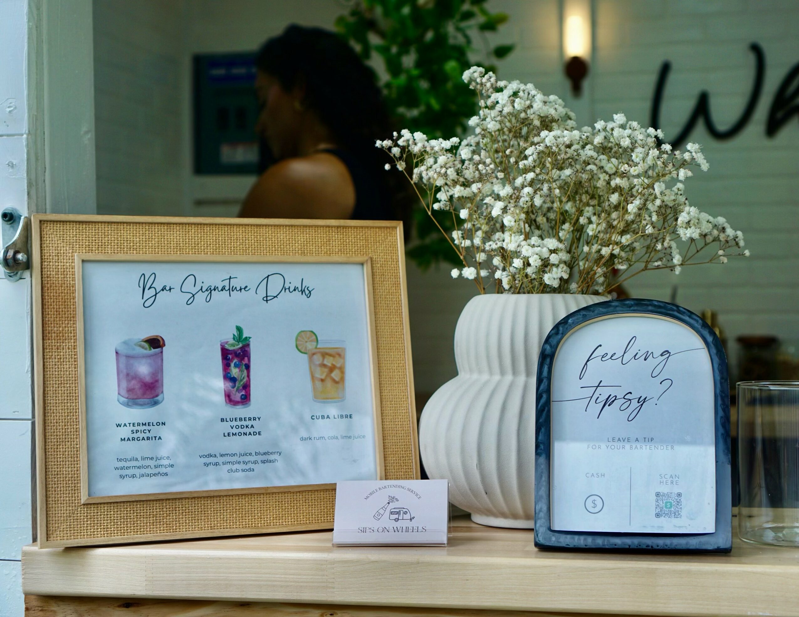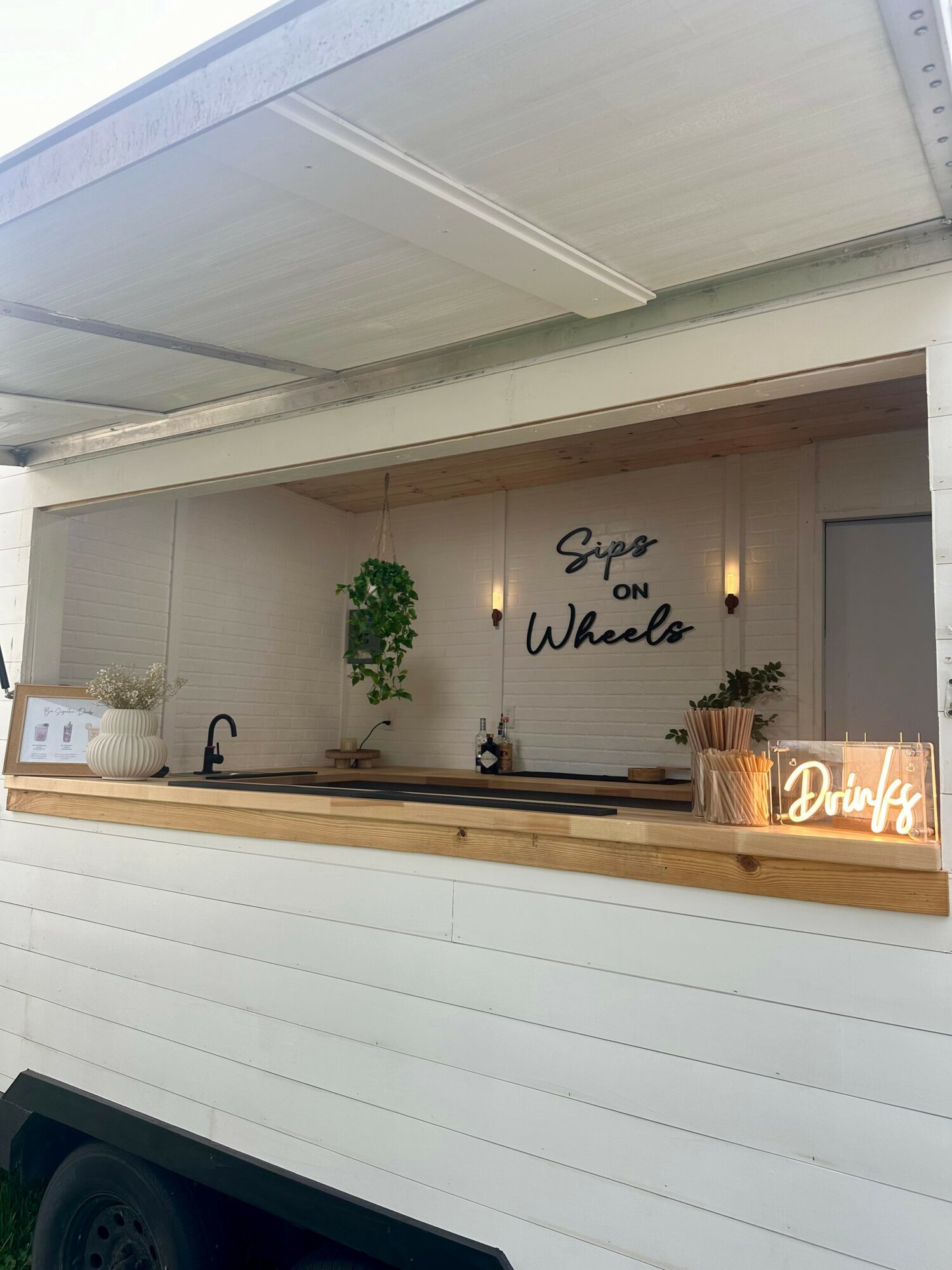 I have been a stay at home mom for about 4-5 years combined between both of my sons. I stopped working due to a health condition that my son has and worked here and there but nothing consistent. I have always had a passion for entertaining, decor, and party planning. I came up with the idea of having a mobile bar but with photo back drop option because It was something different and something we have very few of in Miami, and as someone who throws several parties a year, I knew exactly what fellow party throwers would want for their event! It took about a year of planning and building our trailer from the bottom up. We opened up in August and have had a few events so far and I am just so so excited for the potential that Sipsonwheels has.