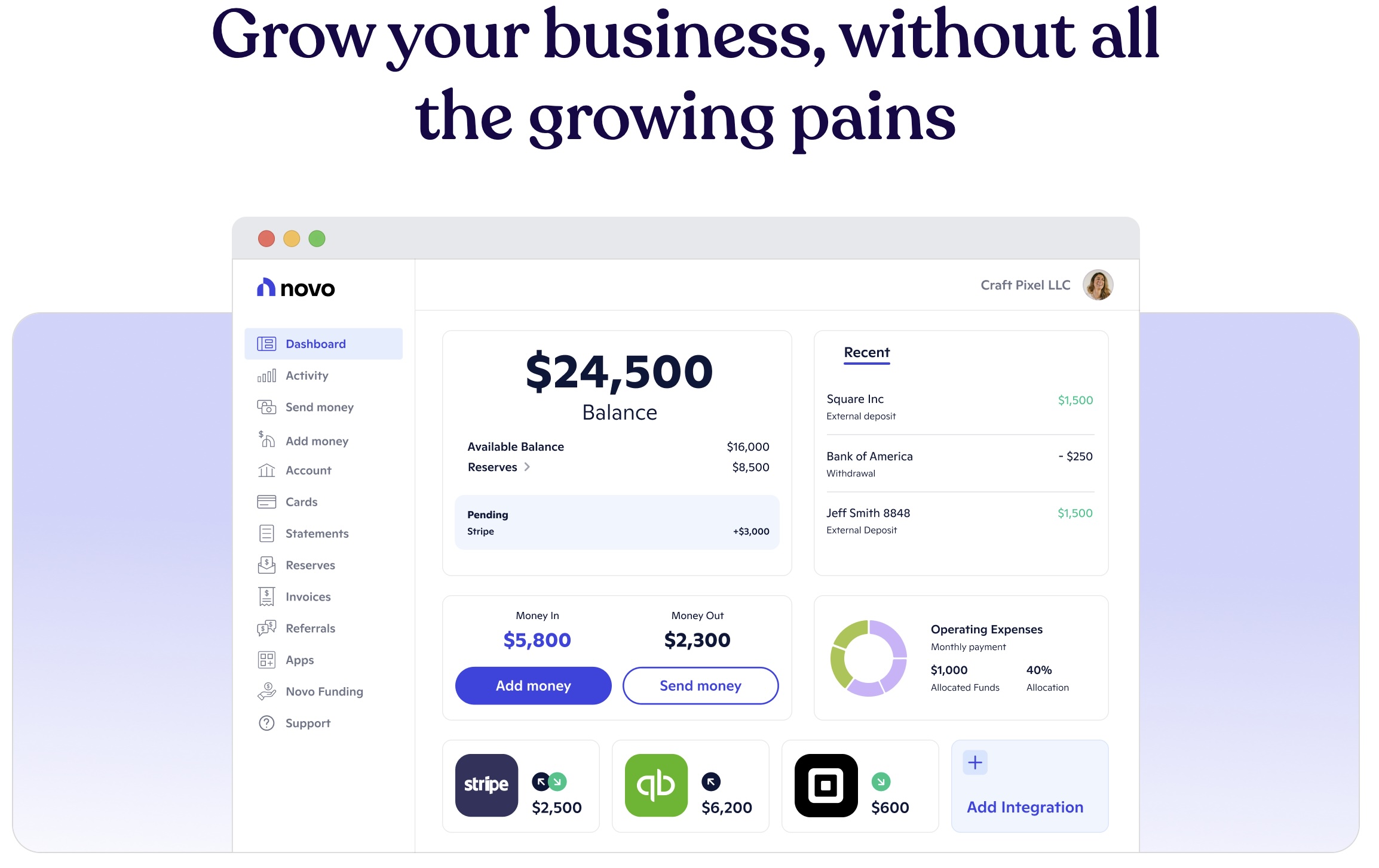 Small business owners who switch to Novo quickly see that we help them save time, streamline their finances, and improve their cash flow. And we do all of this without charging “maintenance” or other hidden fees.