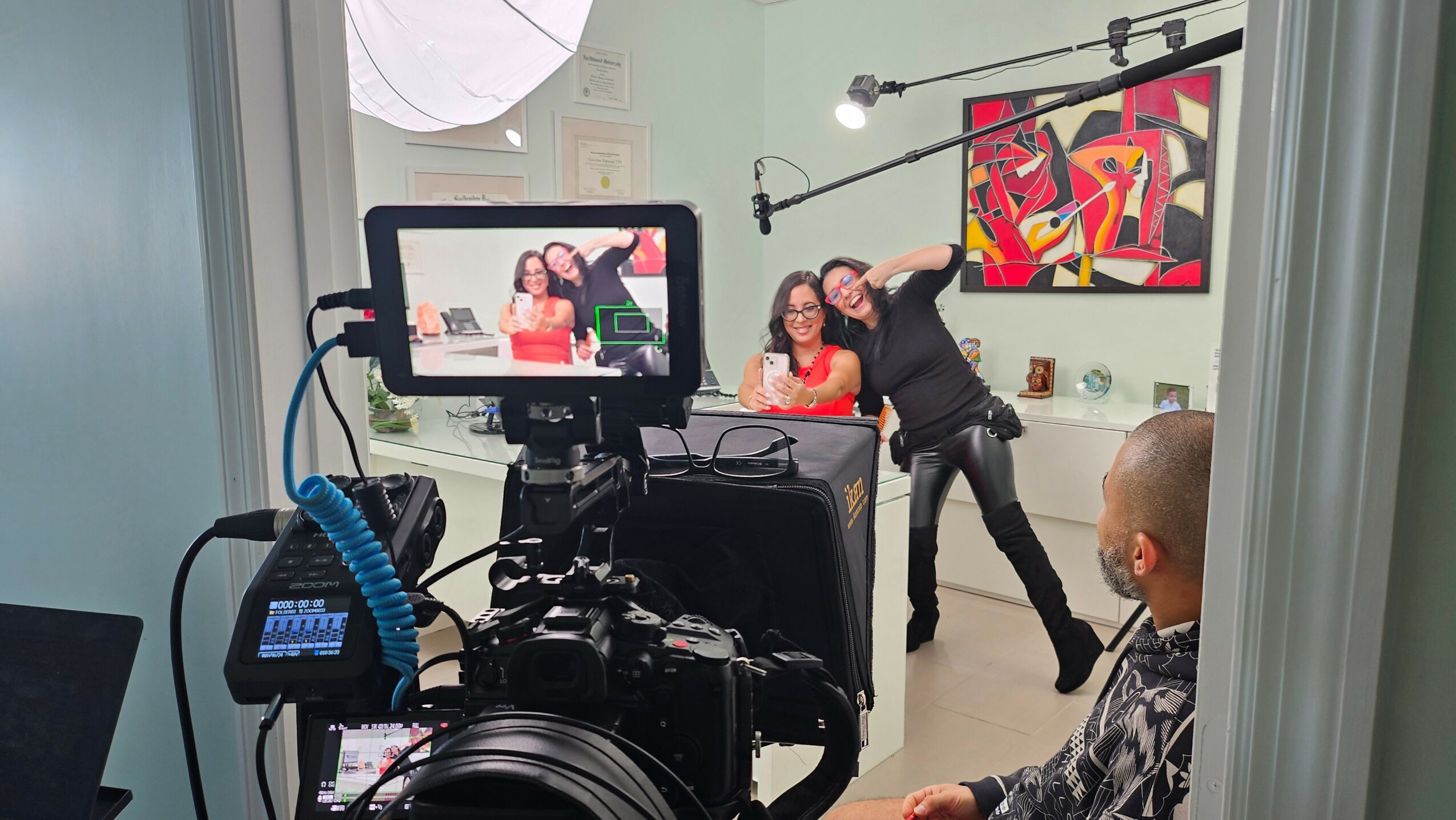 Some clients just need clarity – so we do strategy sessions and hand them the roadmap. Others want to DIY but need guidance, so we become their fractional producers, giving them all the creative direction and they film with their phones. Some want virtual support – we’ll literally direct them via Zoom, help with ideation, planning, editing, the whole nine yards. And then there are the clients who just want to show up and be brilliant while we handle everything else – filming, editing, posting, even the marketing automation through systems like Go High Level.