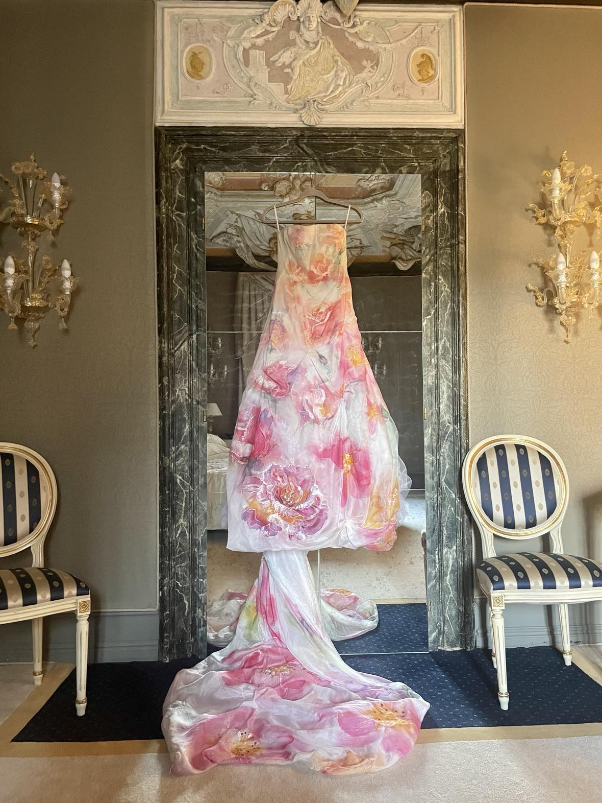 That journey that started with the first silk shawl collection has expanded into hand-painted bridal couture, art couture, luxurious resort wear. children’s couture, men’s accessories as well as extraordinary collection of masterpieces, where each work of art is one of a kind and an original painting that can also be displayed as an interior design detail on a specially hand-painted mannequin. Violeta Lucce also offers a collection of paintings beautifully framed for modern interiors. The artist can be commissioned to create a painting of your desire.