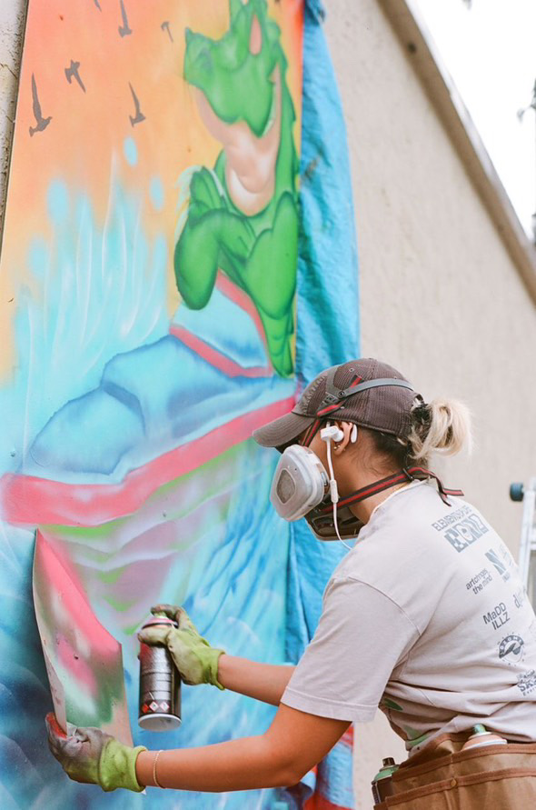 Now living in Florida, people often tell me my New York accent still slips out, and honestly, I wear that with pride. I crave the sounds, the bounce, the grit, and the art scene of New York. It is the heartbeat that still fuels me. All those nuances live in my work. My art is a reflection of both cultures colliding, the bold, textured, and colorful influence of my Cuban roots, and the raw, urban energy of New York. I paint murals that celebrate Latin culture through vibrant color and pattern, but I also create pieces inspired by NY rappers, subway stations, graffiti, and street art. Even in photography, I’m drawn to places that tell a story, walls covered in tags, street corners, drums, DJs, and moments of everyday culture.