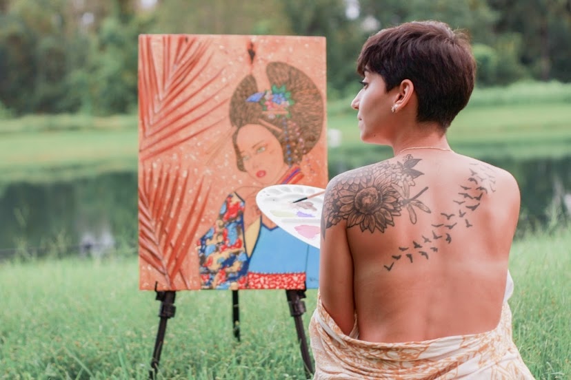 I feel most at peace when I’m alone and creating. Over the years, I’ve learned to create both in solitude and in the middle of a crowd, and while I love the energy of both, there’s something sacred about creating in my own space. My home and my parents’ home are my favorite places to work. When I’m there, I fall into a kind of trance that feels effortless and healing. I think, I release, I analyze, I plan, I pray, and I dream. It’s in those moments that I feel most connected to myself and my purpose. My idea of a perfect happily ever after is to one day retire in a small home surrounded by nature, spending my days creating freely. As much as my art makes me an extrovert in the world, at my core, I’m an introvert who finds peace in stillness and creation.